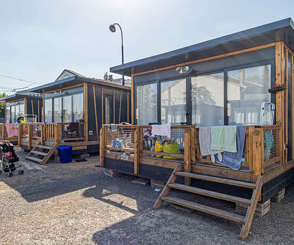 Ce village vise l’accueil de mères isolées avec enfants, avec un dispositif rapide à mettre en œuvre et adapté à un foncier temporairement mobilisable. L’association Le Mas gère le village et ses occupants.